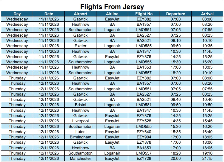 JERSEY WEEKEND FLIGHTS & STAY OPTIONS